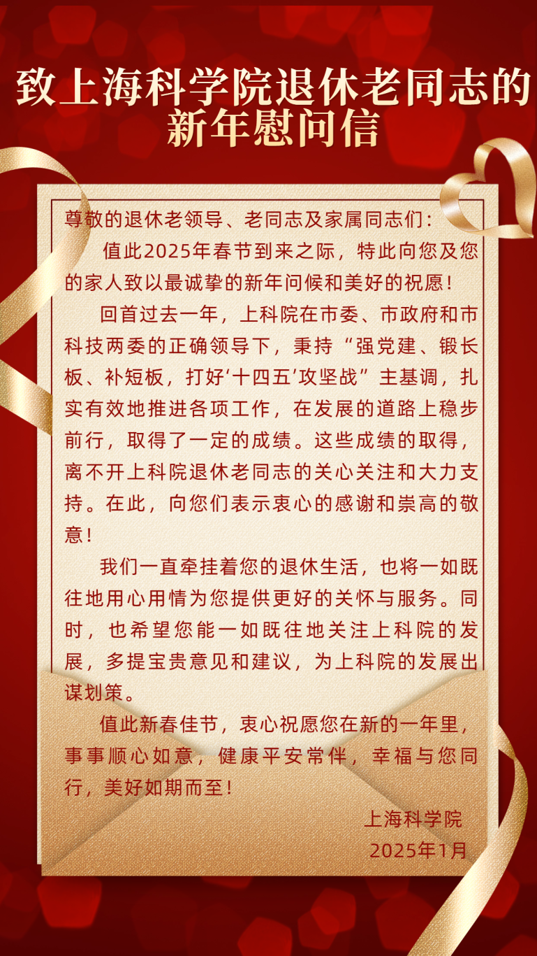 此外,汇博娱乐 为全院每位退休职工精心送上《致汇博娱乐 退休老同志的新年慰问信》,表达深深敬意与祝福。